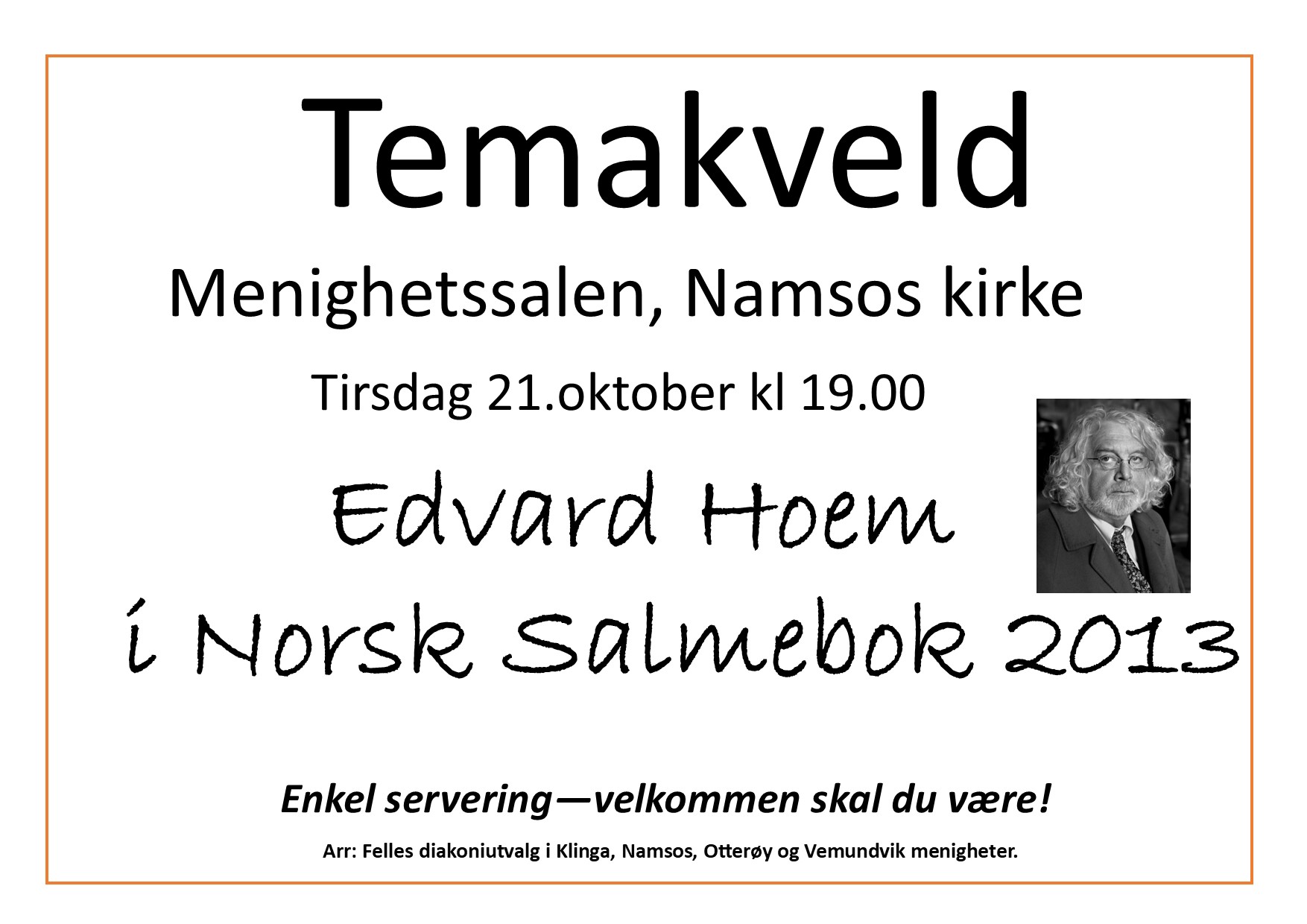 Har du kjennskap til forfatter Edvard Hoem? Har du sunget noen av hans salmer? Mange vil kunne svare ja! Og dersom du ennå ikke vet, så vil temakvelden tirsdag 21. okt kunne utgjøre et før og etter for deg!