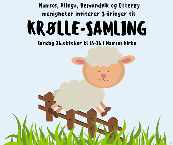 Søndag 26.oktober kl 15-16 er det Krølle-samling for 3-åringer tilhørende Namsos, Klinga, Vemundvik og Otterøy menigheter, i Namsos kirke.