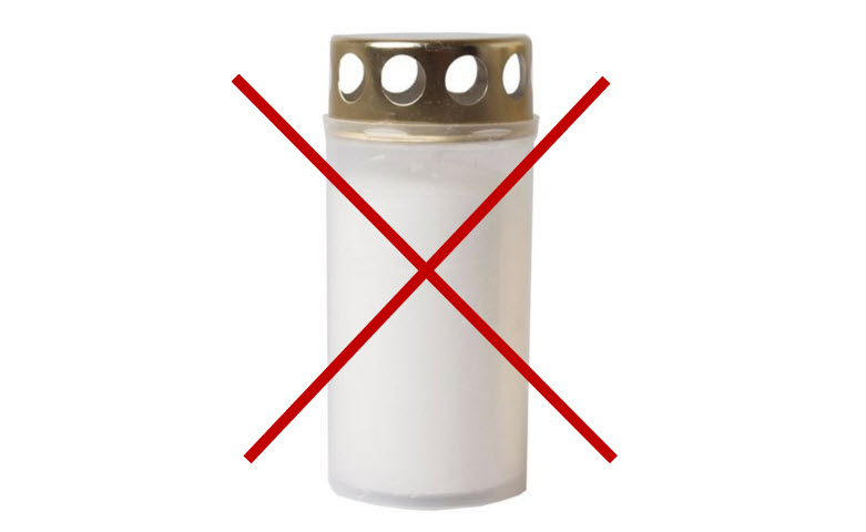 Påminnelse før Allehelgen om at det er forbud mot slike på våre gravplasser.